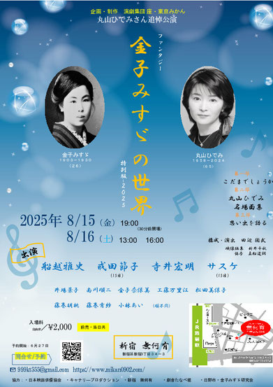 協力:・日本映画俳優協会 ・キャナリ―プロダクション ・無何有 ・劇舎たなべ組・日野市金子みすゞ研究会